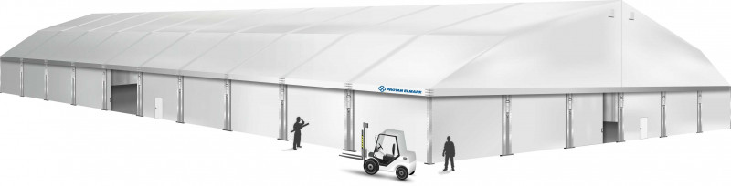 Among the many advantages of this our clear span tents are, not only the flexible order and supply dates, but also the easy assembly of the storage structures on any type of surface giving you the freedom to expand your existing warehouse complex at your chosen location.